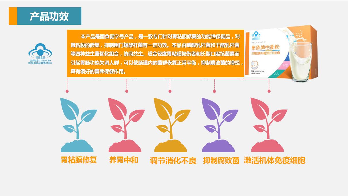 是雙乳桿菌和干酪乳桿菌等四種益生菌優(yōu)化組合的。協(xié)同共生,適合呢那種輕度胃粘膜損傷者和長(zhǎng)期口服抗生素而引起的。胃腸功能失調(diào)的人群,它可以使腸道內(nèi)的菌群恢復(fù)正常平衡,抵制腐敗菌的增殖,具有很好的營(yíng)養(yǎng)保健的作用。