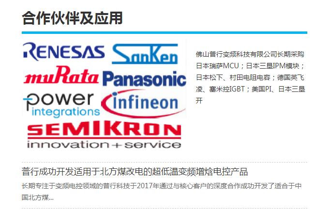 公司研發(fā)團隊具有長期豐富的變頻控制系統(tǒng)開發(fā)經(jīng)驗,擁有相關(guān)變頻驅(qū)動技術(shù)的核心算法,自主研發(fā)的變頻控制系統(tǒng)已達到業(yè)內(nèi)領(lǐng)先水平;公司與全球領(lǐng)先的電子器件供應(yīng)商 RENESAS(瑞薩)、 SANKEN(三墾)、 SEMIKRON(賽米控)、PANASONIC(松下)等品牌建立良好的合作關(guān)系,保證產(chǎn)品的優(yōu)良品質(zhì)和穩(wěn)定供應(yīng);并與日本知名企業(yè)建立了長期的戰(zhàn)略合作關(guān)系,專線生產(chǎn),保證了產(chǎn)品的穩(wěn)定品質(zhì)和及時交付;公司具有嚴(yán)格的品質(zhì)管控流程以及先進的測試設(shè)備,并將行業(yè)最高標(biāo)準(zhǔn)設(shè)定為企業(yè)標(biāo)準(zhǔn),保證產(chǎn)品的高可靠性和高效率。